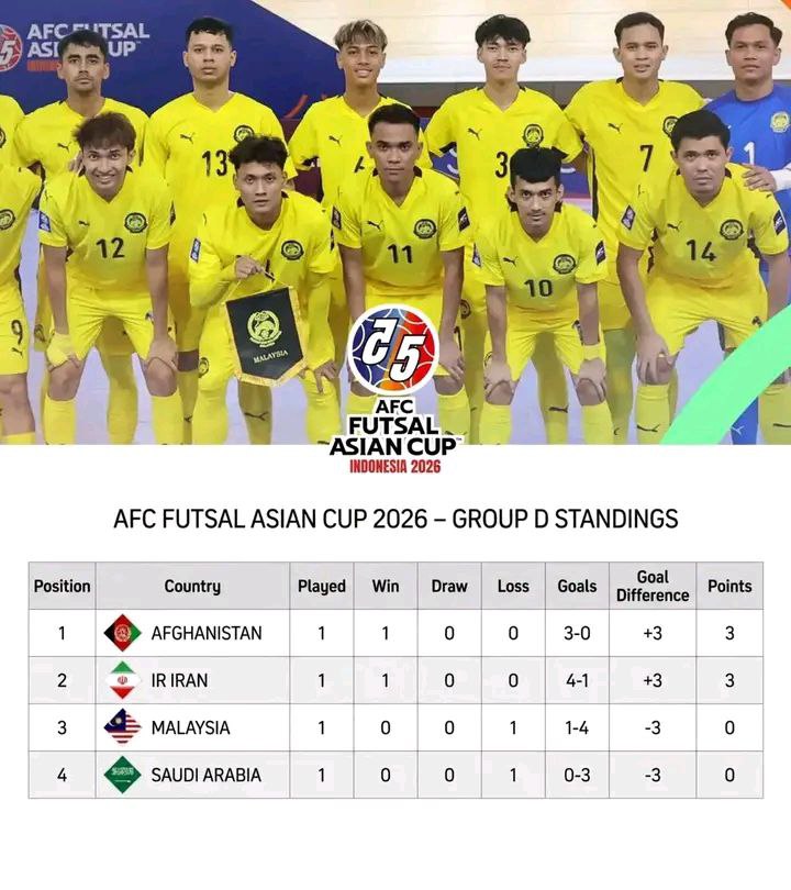 به گزارش ایراف، تیم ملی افغانستان روز جمعه، ۱۰ بهمن ۱۴۰۴ و از ساعت ۱۴:۳۰ به وقت کابل در دومین مسابقهاش در مرحله گروهی جام ملتهای فوتسال آسیا ۲۰۲۶ برابر مالزی قرار خواهد گرفت؛ مسابقهای که اهمیت زیادی در تعیین سرنوشت صعود این تیم دارد.