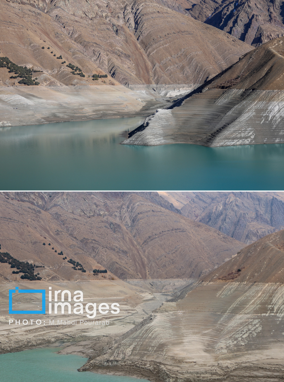 - این مجموعه عکس یک مقایسه تطبیقی است که نشان میدهد وضعیت کنونی سد کرج از شرایط سال ۱۴۰۱ بحرانی تر است. در سال ۱۴۰۱ سد کرج یکی از خشکترین دورههای خود را پشت سر گذاشت، اما امسال افت حجم ورودی و سرعت کاهش ذخایر مخزن بهمراتب بیشتر گزارش شده است. کارشناسان هشدار میدهند که تداوم این روند میتواند رکوردهای کمآبی سالهای گذشته را پشت سر گذاشته و تأمین آب پایتخت را با چالش جدی روبهرو کند. سد کرج، یکی از اصلیترین منابع تأمین آب شرب تهران، این روزها با کاهش بیسابقه ذخایر آبی مواجه است. بر اساس آخرین گزارشها، حجم آب این سد که تأمینکننده نیاز آبی نزدیک به پنج میلیون نفر در استان تهران است، در مقایسه با مدت مشابه سال گذشته بیش از ۴۰ درصد افت داشته است. تداوم خشکسالی، کاهش محسوس بارشها و افزایش برداشتها باعث شده ورودی سد به کمترین سطح طی ۱۰ سال اخیر برسد.