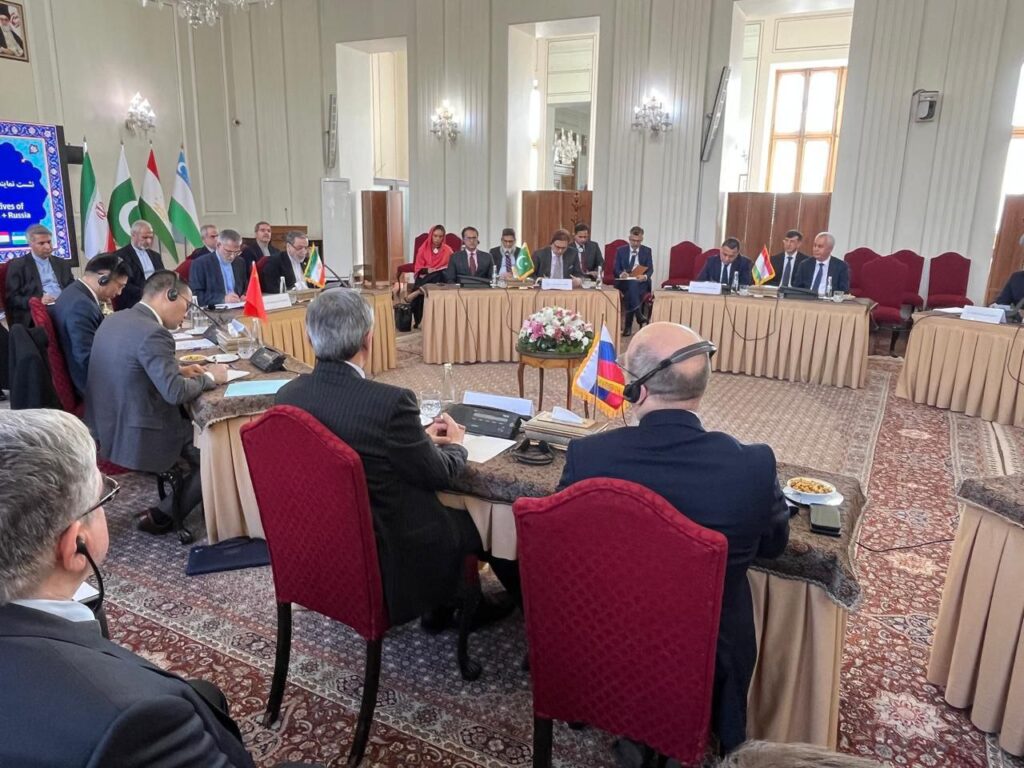 نشست تهران با حضور نمایندگان ایران، پاکستان، روسیه، چین، تاجیکستان، ترکمنستان و ازبکستان برگزار شد.